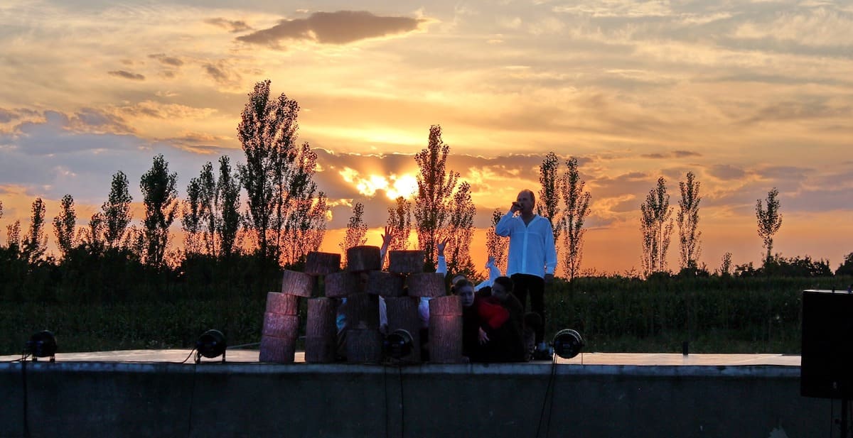 Az Aradi Kamaraszínház és a békéscsabai Tabán Táncegyüttes előadása Ágyán (Arad)